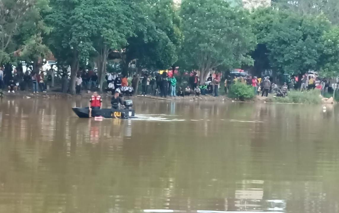 Di lokasi, tampak Tim SAR gabungan turun melakukan pencarian dengan menggunakan perahu karet serta menyelami titik-titik terakhir hilangnya mahasiswa tersebut.
